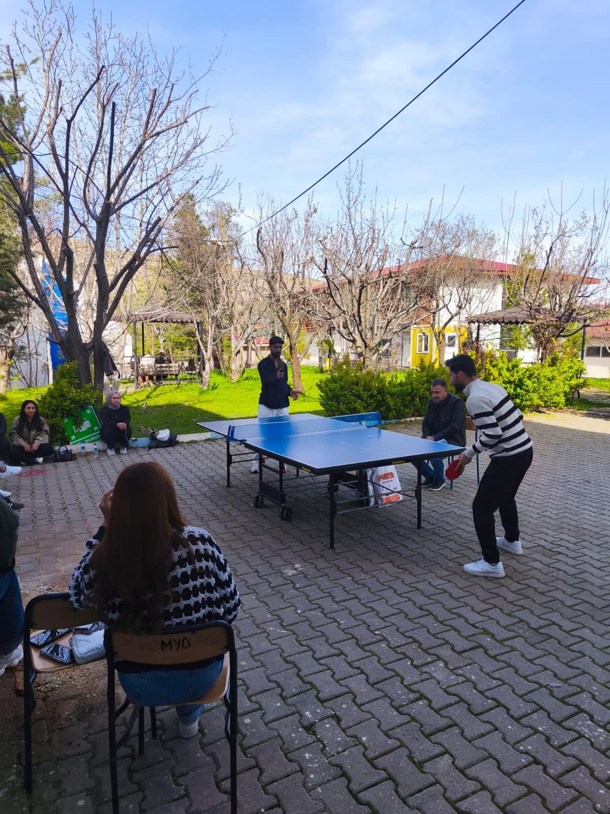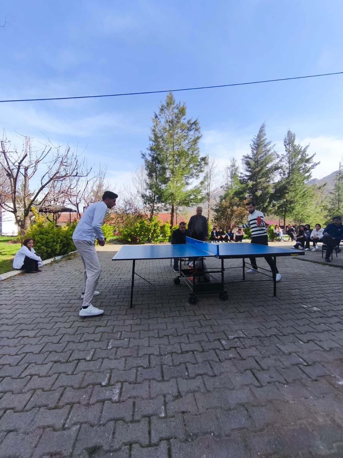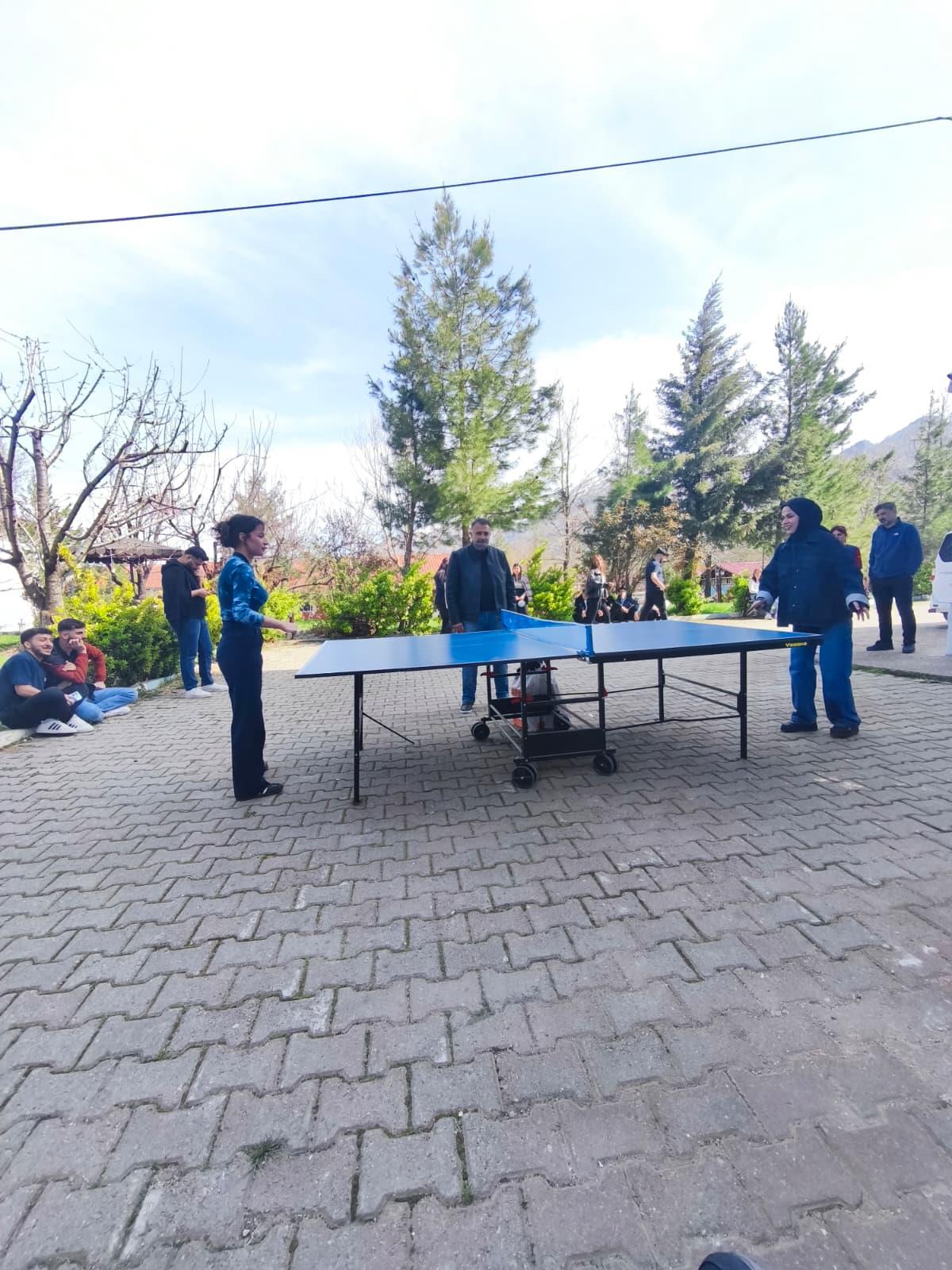 Siirt Üniversitesi Eruh Meslek Yüksekokulu bahçesinde düzenlenen öğrenciler arası masa tenisi turnuvası, oynanan final müsabakalarıyla tamamlandı. Turnuva süresince büyük bir heyecan ve rekabet yaşanırken, öğrenciler bireysel performanslarını sergileyerek keyifli anlar yaşadı. Final karşılaşmalarının ardından gerçekleştirilen ödül töreninde dereceye giren öğrencilere ödülleri takdim edildi. Samimi ve coşkulu bir ortamda sona eren etkinlik, kampüs içinde sporun yaygınlaşmasına ve sosyal etkileşimin artmasına katkı sağladı