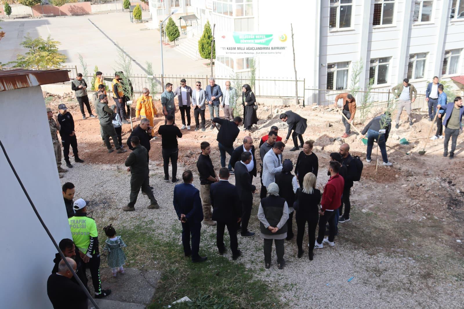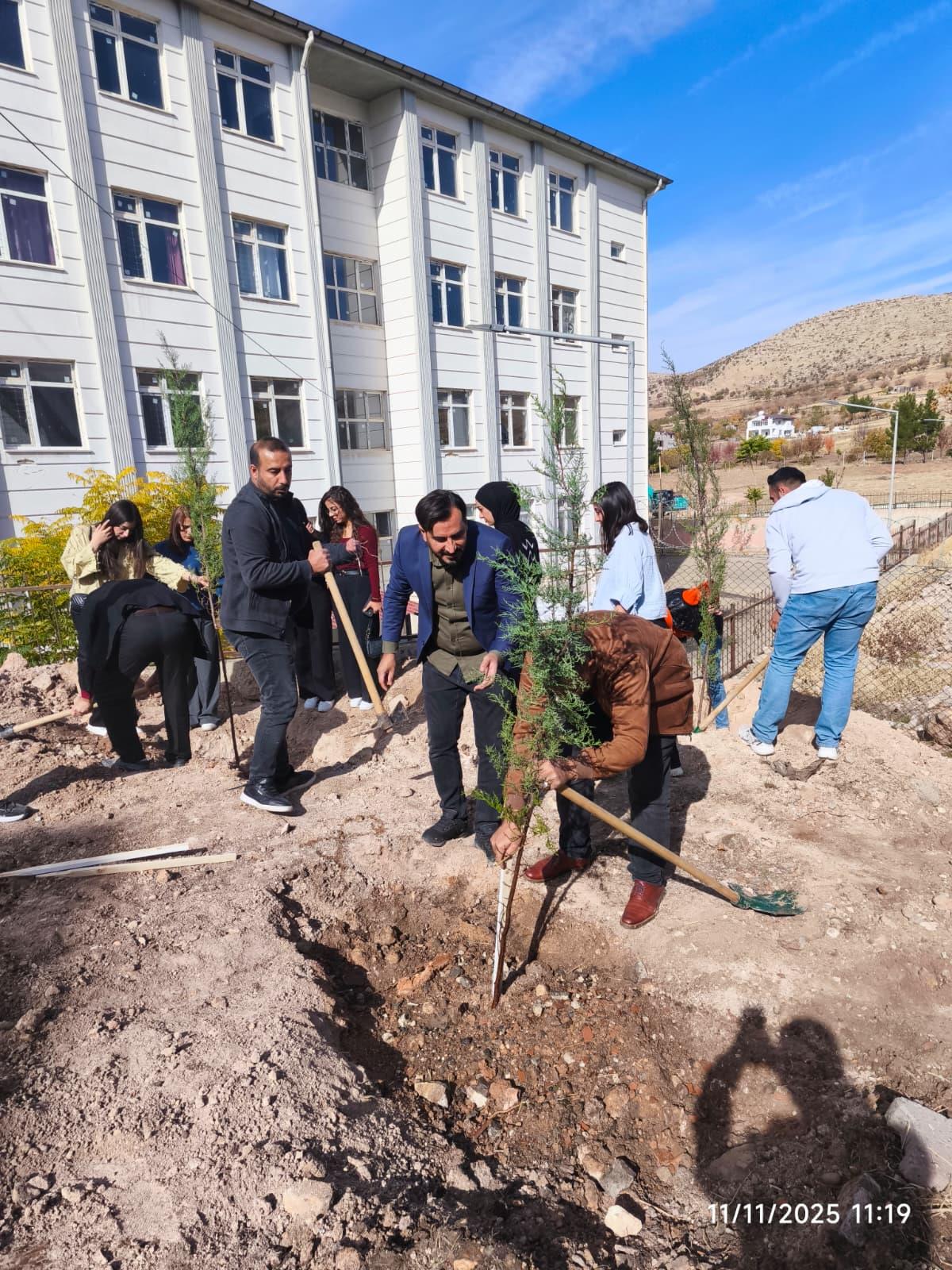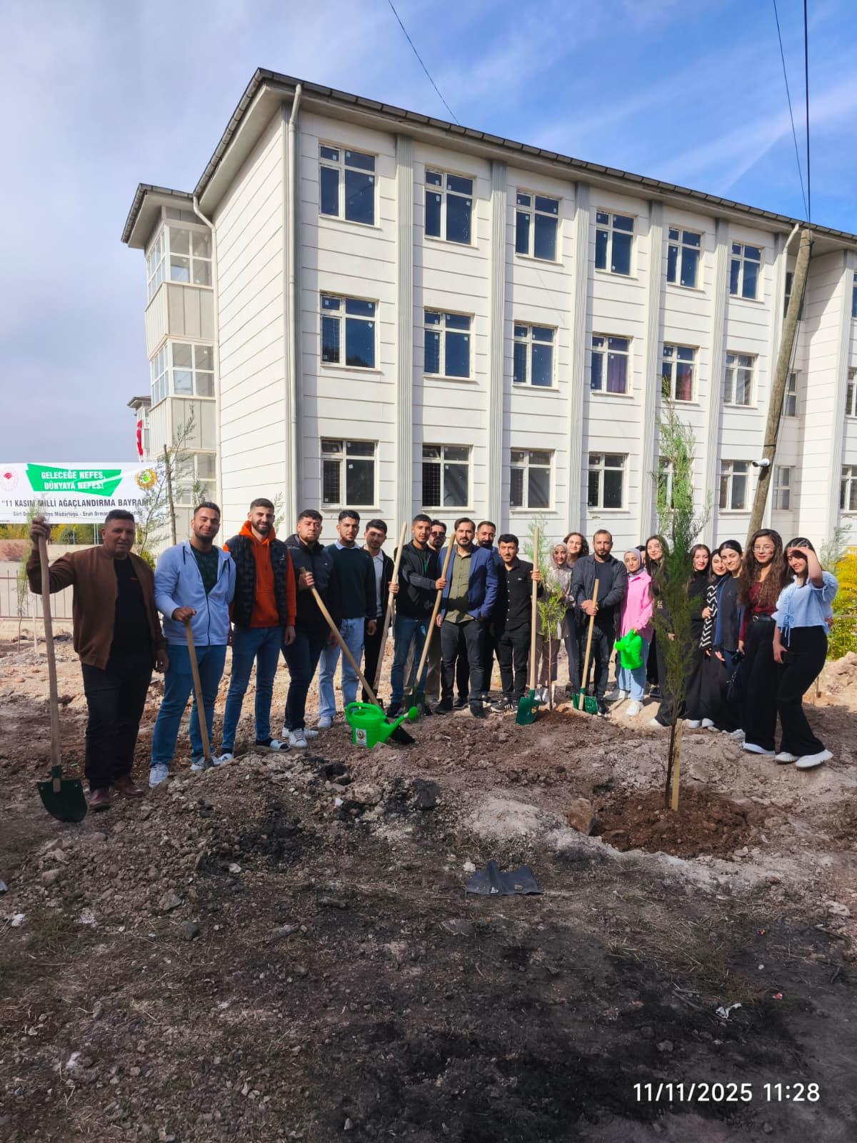 11 Kasım Milli Ağaçlandırma Günü kapsamında, Eruh Orman Şefliği öncülüğünde saat 11.11’de Eruh Meslek Yüksekokulu bahçesinde fidan dikim etkinliği gerçekleştirildi.