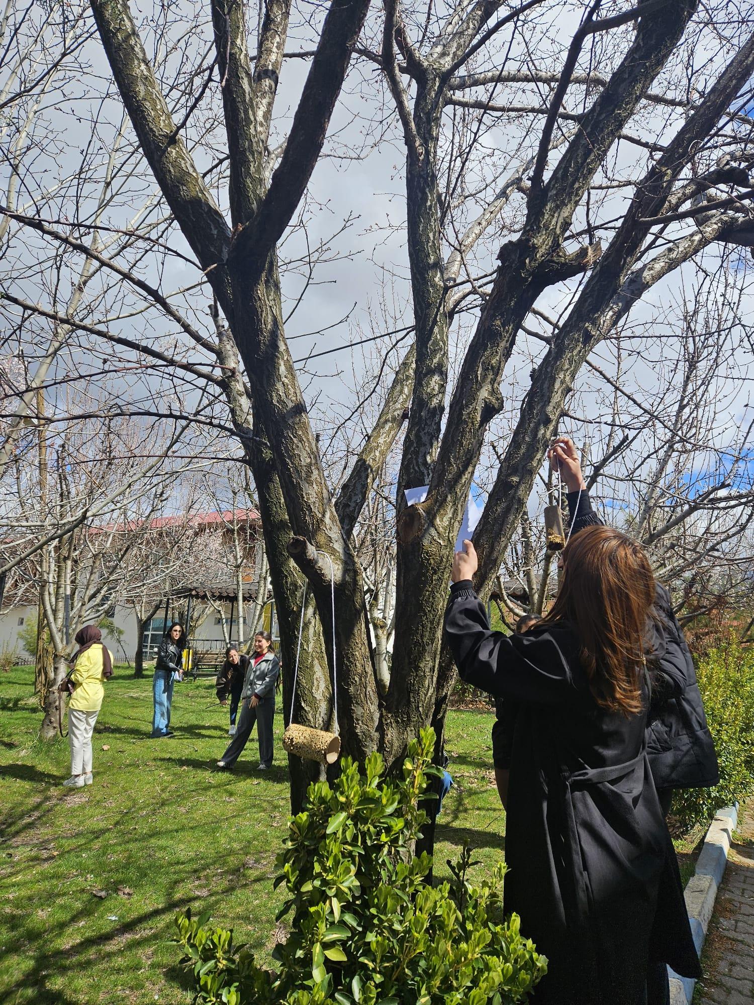 Siirt Üniversitesi Eruh Meslek Yüksekokulu Çocuk Gelişimi Programı öğrencileri tarafından kampüs bahçesinde bulunan ağaçlara kuşlar için yemlikler asılarak anlamlı bir etkinlik gerçekleştirildi. Öğrencilerin doğaya ve canlılara duyarlılıklarını ortaya koyduğu etkinlikte, özellikle soğuk havalarda yiyecek bulmakta zorlanan kuşlar için destek sağlanması amaçlandı. Kampüs içerisinde gerçekleştirilen bu çalışma, hem çevre bilincinin artırılmasına katkı sundu hem de doğayla uyumlu bir yaşam anlayışının önemine dikkat çekti. Öğrencilerin gönüllü katılımıyla hayata geçirilen etkinlik, doğaya karşı sorumluluk bilincini güçlendiren güzel bir örnek olarak takdir topladı.
