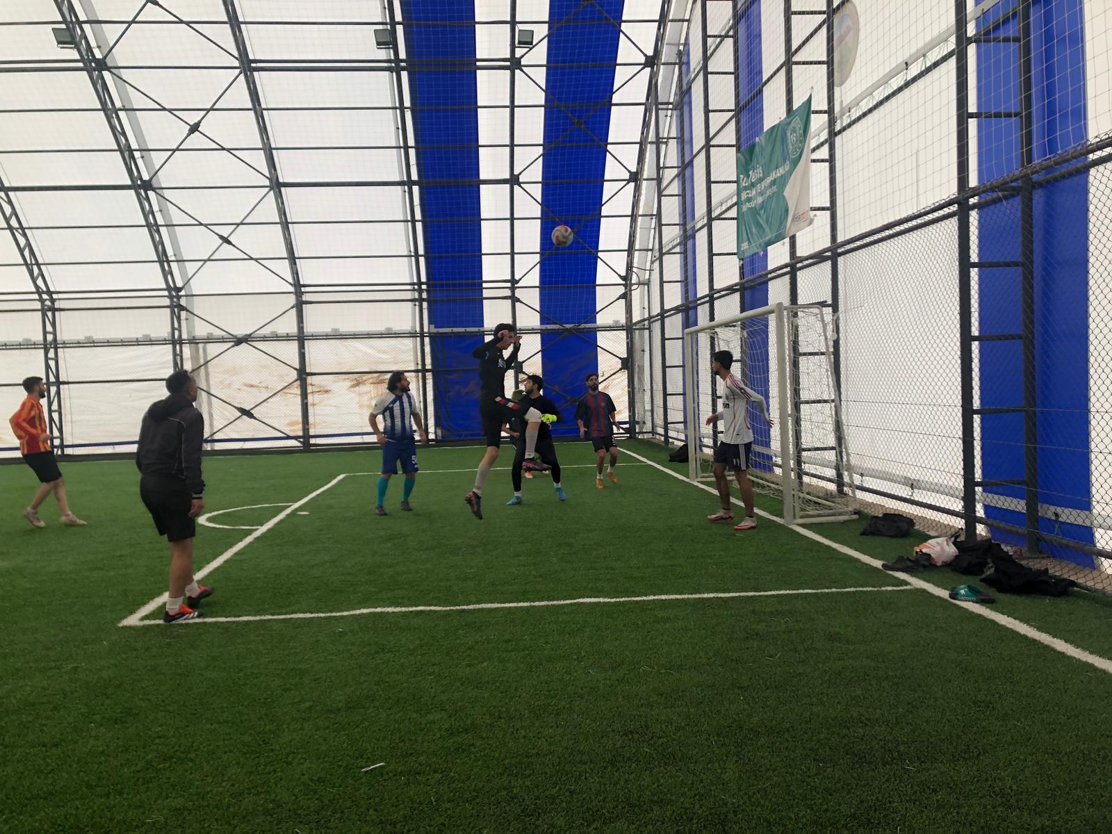 Siirt Üniversitesi Eruh Meslek Yüksekokulu’nda düzenli olarak gerçekleştirilen haftalık futbol maçları, öğrenciler ile akademik ve idari personelin katılımıyla devam ediyor. Kampüs içerisinde oynanan karşılaşmalar, hem sportif rekabeti hem de keyifli anları bir araya getirirken, katılımcılara yoğun tempoya kısa bir mola imkânı sunuyor. Maç sonunda yapılan baklava ikramı ise etkinliğe ayrı bir tat katarken, samimi ve neşeli bir ortam oluşmasına katkı sağladı. Futbolun birleştirici gücüyle gerçekleşen etkinlikler, kampüs içindeki birlik ve beraberliği güçlendirmeye devam ediyor.